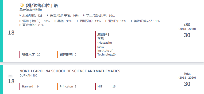 Polarislist排名是基于一个单一的可观指标——一所高中送进顶尖大学的实际学生人数,而Polarislist拥有超过19,000条记录,是美国高中哈佛、普林斯顿和麻省理工学院入学数据的最大聚合器。