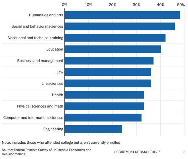 施密特说,美国国家支持STEM的运动可能导致许多人文学科毕业生后悔他们的专业选择。在全球经济衰退的时候,纵然是不同的专业选择也并未改善他们的就业机会。他们在这样的大环境中苦苦挣扎,而学位显然成了替罪羊。