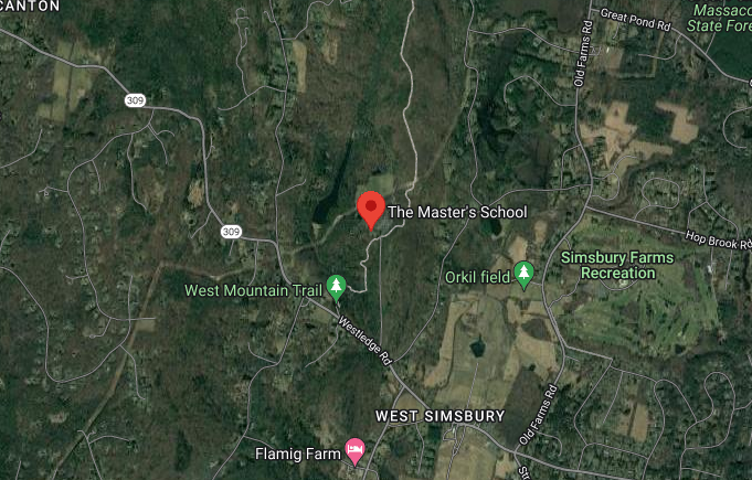 玛斯特中学建于1970年,坐落在一个美丽的76英亩、10栋建筑的校园里,坐落在康涅狄格州西辛斯伯里一座小山上的树林里,这里以秋景美丽著称。这片地区因起伏的群山、连绵的森林、寂静的环境为众多艺术家和专业人士所喜爱,这些专业人士包括从纽约来的医生、律师、建筑师和工程师。学校仅需半个小时即可到达哈特福特,哈特福特拥有全国最古老的公共艺术博物馆,沃兹沃斯博物馆,这是艺术系学生最常去的地方。