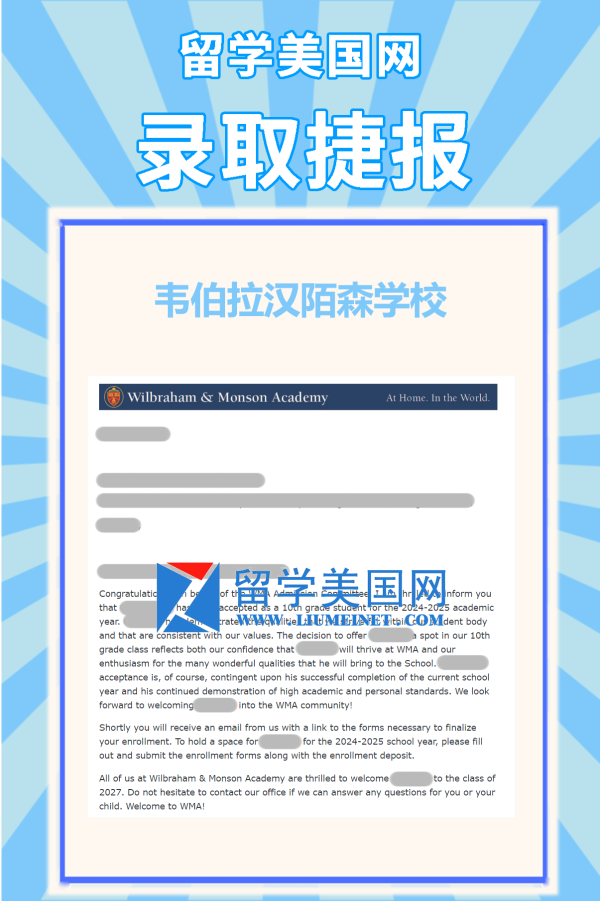 补录捷报丨麻省顶尖寄宿美高-韦伯拉汉·莫森中学offer一枚!