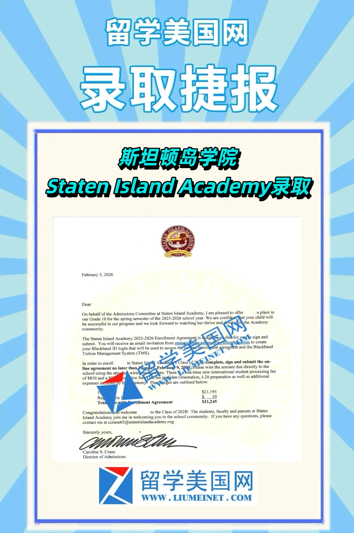 录取捷报~恭喜迈润肯W同学斩获斯坦顿岛中学录取~