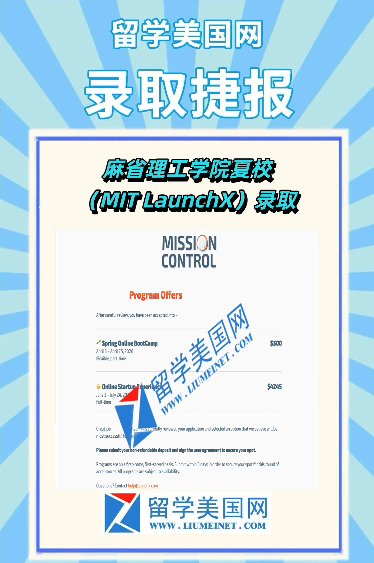 开工第一天迈润肯传来录取喜报 | 顶流夏校麻省理工学院LaunchX暑期项目(MIT LaunchX) 热烈祝贺 L 同学成功斩获麻省理工学院LaunchX暑期项目(MIT LaunchX)录取! 麻省理工学院LaunchX暑期项目: 麻省理工学院LaunchX暑期项目(MIT LaunchX)创办于2013年,现已成为全球最有影响力的学生创业夏校。该项目每年夏天都会聚集来自世界各地的顶级有抱负的高中创业者,支持参赛者完成启动实际创业公司的过程。参赛者将加入来自全球各地的有前途的年轻创业者团队,向行业专家学习,并利用项目提供的领先的课程材料和支持团队,与同行联合创始人合作,以可行的方式打造真正的产品并解决商业挑战。 LaunchX不是一个商业计划书竞赛--学生们创办真正的公司。这些初创公司的驱动力是利用设计思维过程发现创新机会,以广泛的市场调研、原型的多次迭代和用户测试为支撑,并通过迭代和客户开发获得牵引力。 为什么要参加 Launch X: 超越传统学术,获得“创客”硬核能力: 不是学理论,而是真实践:你学的不是商业教科书,而是如何从一个想法开始,进行市场调研、设计产品、建立财务模型、并最终推向真实市场。 掌握核心工具:你会亲手使用商业模式画布、最小可行产品、用户访谈、 pitching 等硅谷创业公司真正在用的方法论。 理解商业全貌:从技术、营销到融资,你将获得一个公司如何从0到1的全局视野,这是任何单一学科课程都无法提供的。 解决问题的能力: 创业过程中充满未知和失败。你将学会如何定义问题、分析根源、迭代方案,这种“问题解决肌肉”是未来学习和工作的核心。 坚韧与抗挫商:你的第一个产品想法很可能会失败。但正是在这个过程中,你学会了如何接受反馈、从失败中学习、并再次站起来——这种品质比任何一次考试满分都更让招生官动容。 构建无与伦比的人脉网络: 顶尖的同伴:你的队友和同学是未来潜在的联合创始人、工程师、CEO。这个高质量的同辈网络将是你一生宝贵的财富。 资深的导师:Launch X 的导师是来自MIT等顶尖院校的教授和成功的创业者,他们的指导和建议极具价值。 为大学申请打造标志性项目: 差异化优势:当绝大多数学生都在展示他们的奥数奖牌或科研经历时,一个成功的创业项目(哪怕很小)能让你立刻脱颖而出。它讲述了一个关于主动性、创造力和影响力的独特故事。 文书和面试的绝佳素材:整个创业过程中的挣扎、洞察和成长,都是撰写申请文书和应对面试问题时最真实、最动人的素材。 Launch X是一个“放大器”和“验证器”。它能将学生的学术兴趣、个人热情和核心能力放大成一个看得见、摸得着的项目,并向大学验证他们具备在真实世界中取得成功所必需的创造力、领导力和坚韧品格。 项目优势: 稀缺性:LaunchX 的录取率极低,远低于哈佛、斯坦福等名校的本科录取率,本身就是一种筛选。 成果导向:它要求学生在8周内完成一个真实的创业项目,从构思到落地,甚至产生真实的用户或收入。这种经历在文书和面试中是无可替代的素材。 行业背书:LaunchX 的导师和校友网络是顶级的,一封来自 LaunchX 导师的推荐信,在商科和创投圈分量极重。 MIT LaunchX被誉为“创业夏校天花板”与“名校申请王牌入场券”,其录取率极低,竞争激烈。此次录取,正是对L同学卓越的创新能力、商业思维与综合潜力的有力证明! 我们为L同学的优秀表现感到由衷骄傲,也衷心感谢学生与家长一直以来的信任与配合。 再次恭喜L 同学! 留美网24小时热线:15011066813 专家热线:13910531929 微信公众号:liumeinet(迈润肯高中留学) 顾问微信:liumeinet2014