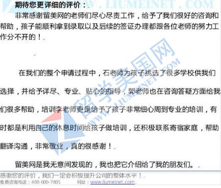 留美网再次感谢来自全国各地的家长和同学们对我们的信任,其中很多客户甚至没有来过北京办公室。留学美国网的同仁们会更加努力,提升服务质量,把工作越做越好!