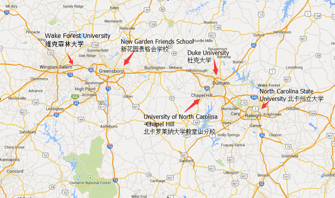 5、学校周边有多所精英大学及学院: 伊隆大学,威克弗里斯特大学,吉尔佛学院,北卡罗莱纳大学教堂山分校,杜克大学,海波特大学,维克森林大学等。使学生有机会参观这些学校根据自己的情况选择合适的学校。