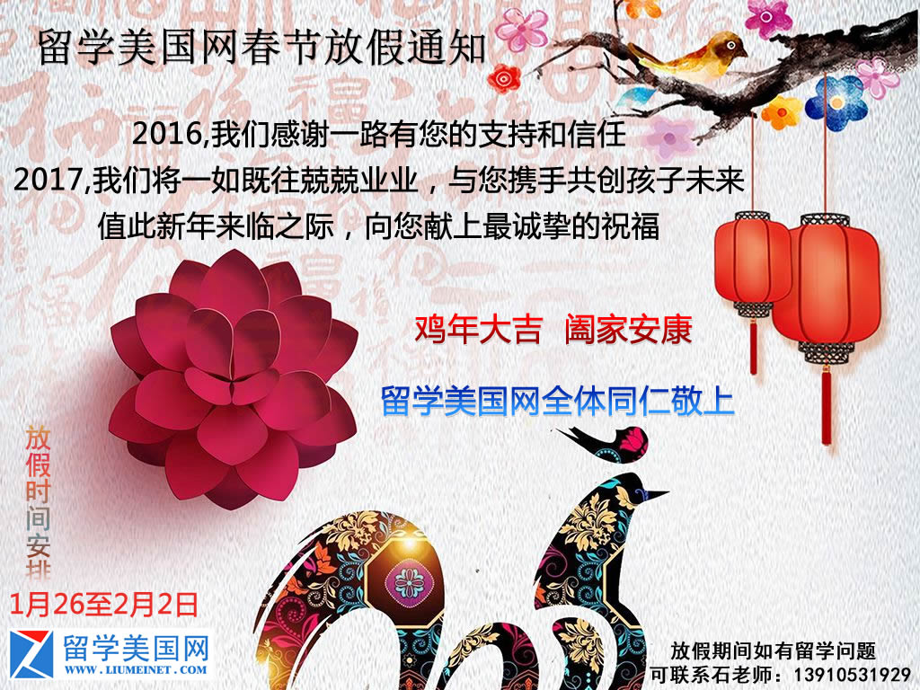 2017年留学美国网春节放假通知
