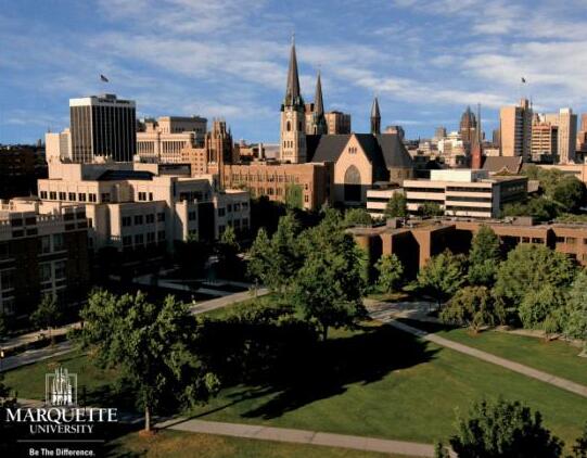马凯特大学Marquette University(简称MU)是一所四年制私立天主教大学,成立于1881年, 位于威斯康辛州密尔沃基市(Milwaukee) ,美丽的密歇根湖西岸,校园面积98英亩。学生约12000人,男生约46%,女生约54%,来自60个国家及美国50个州,专业齐全,设有文理学院、商学院、传媒学院、教育学院、工程学院、健康科学学院、护理学院、牙医学院和法学院。商学院通过AACSB认证,工程学院通过ABET认证并有Co-op 项目。