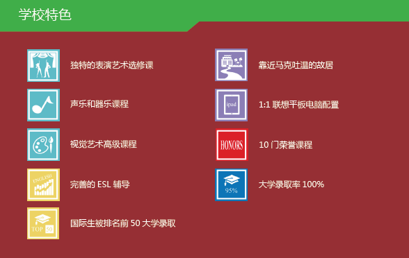 导读:玛斯特中学位于康涅狄格州伯克郡的一座山顶上,校园环境非常优美,学习环境舒适而且学术范围良好,学校距离波士顿两个小时车程,距离纽约两个半小时车程,这里也是马克吐温的故居,诞生了很多伟大的作品,大学升学率100%,学校的表演艺术和声乐课程都是学校特色课程,玛斯特的学生获得国家青年领袖论坛医学项目提名。升学走向和学术水平都非常强,目前学校正在招生中,想申请的家长拨打电话400-000-7805,微信:liumeinet2014