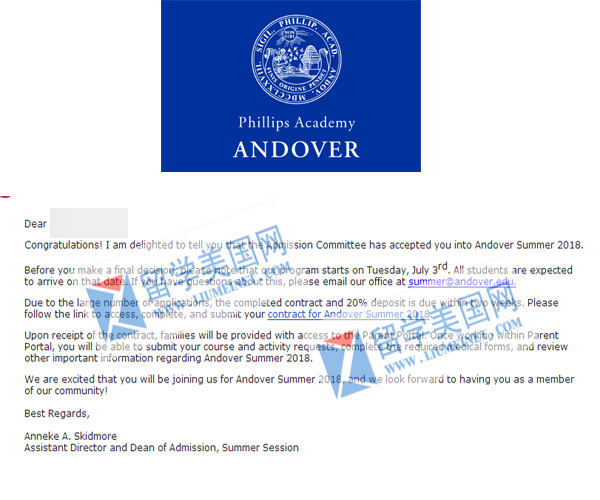 恭喜留美网同学获得Phillips Academy Andover夏校录取offer(全美排名第一)