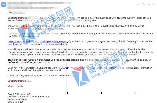 恭喜吕同学获得 Vermont Academy 福蒙特中学 录取offer!感兴趣的同学可以马上咨询:400-000-7805,010-65183908,微信:liumeinet2014