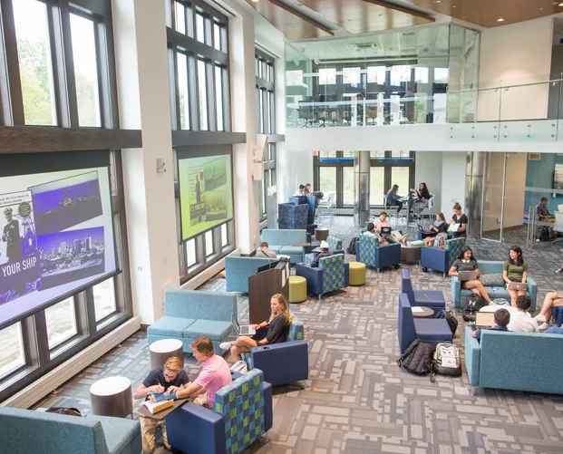 3.The Chiang-Elghanayan创新与合作中心是Blair技术和美术部门的所在地,全天都有从机器人技术到陶瓷的课程,晚上和周末都有俱乐部会议和社区聚会,有底层的Maker Space,延伸到二层的Collaboration Forum,以及一层的多媒体音乐教室,还有计算机以及工程房间供学生学习等。