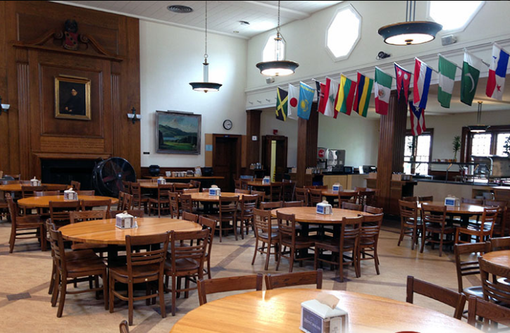 5.校园以及周边环境美不胜收,湖光山色,林木郁郁葱葱,草坪如绿色地毯,小山丘此起彼伏。学校自己的农场供给有机肉食和蔬菜,学生可以自己做菜和锻炼厨艺。