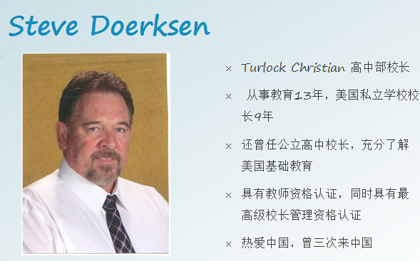 来华人员:校长 校长Steve Doerksen(上图)及初中部管理主任。