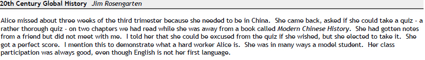 一起看看她的授课老师对她的评价内容,360度无死角全是表扬,对于惯于说真话的美国老师而言,这真是神级高度的评价啊!