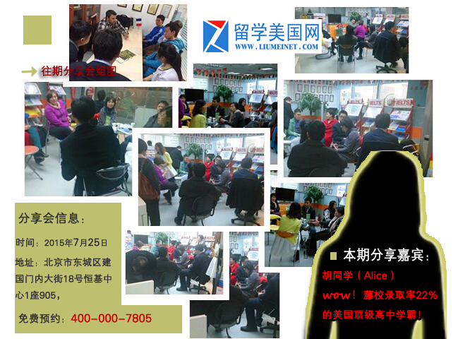 温馨提醒:分享会优先邀请了留学美国网今年秋季即将赴美读书的同学们,座次非常有限,所以建议大家一定要提前预约哦!