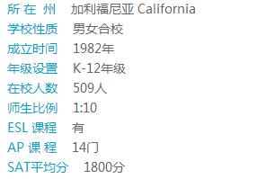 学校是一所大学预备混校,无宗教背景,位于南加州地区。基本数据: