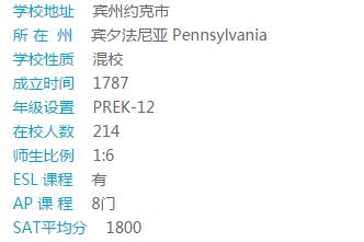 费城白人郊区的最好的K-8年级贵格会学校(没有之一);校园紧邻顶尖文理学院Haverford College,130年前为了给Haverford College教授们的子女提供教育而建校,毕业升学率99%升入东岸顶尖高中;学校位于亲近自然宁静且安全的贵格会社区;校园本身就是一个国家认可的野生动物栖息地;小班教学,个人关注度高,学术积极进取;STEAM学习项目,在初中期间起就重视培养学生对美国热门移民人才稀缺专业Science, Techology, Engineering, Mathmatics学科的兴趣爱好,为引导学生将来走向稳定发展的职业生涯,打下坚实的内在基础;