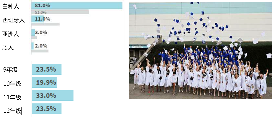 95%学生获得第一志愿院校录取,SAT平均分高于国家和州平均水平,2014届毕业生获得$17百万奖学金。