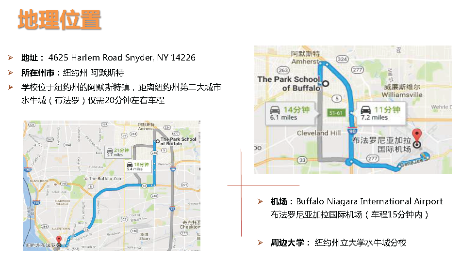 (导读)The Park School of Buffalo水牛城公园学校建于1912年,是一所私立的,混合制学校,学校坐落于风景优美的阿默斯特小镇,该地区分别于1996-1998年度, 2000-2003年度被美国联邦调查机构评为美国最安全地区第一名,其他年度也分别名列前五。校风景很漂亮,适合读书。学校目前有学生250名,其中国际学生为15-20人。每年也只招收6-7名中国学生。高年级学生校园的教学面积为34英亩,学校接受9-12年级的国际学生申请,学校的AP课程有15,毕业学生100%成功入读美国大学。》》申请热线:400-000-7805,微信:liumeinet2014。