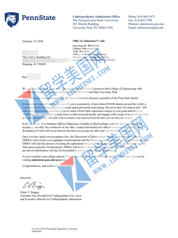 好消息!好消息!重磅消息真是越来越多啊!现在正值录取季!我们又收到一个重要的offer!S同学成功获得美国宾夕法尼亚州立大学录取offer!这个offer来之不易啊!再次恭喜S同学,申请热线:400-000-7805,010-65183908,微信:liumeinet2014
