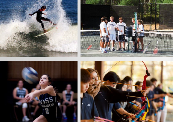排球、网球、田径、垒球、冲浪、帆船、足球、划船、越野、高尔夫、棒球、拉拉队、射箭、篮球等。