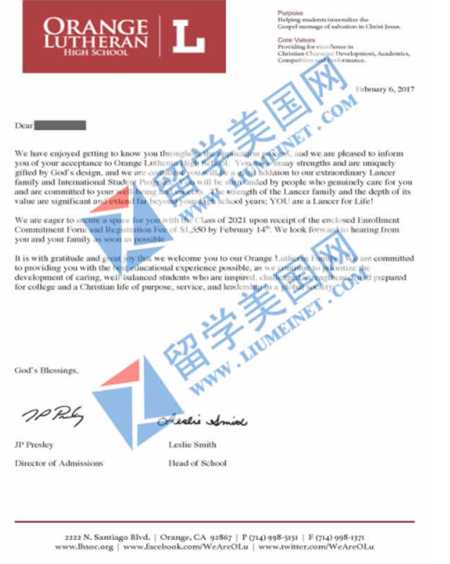 推荐理由:橘郡路德高中Orange Lutheran High School开设了39门高级课程(18门AP,21门荣誉),不光注重学术的提升,同时注重艺术和体育的发展,大部分的毕业生都申请到了加州大学系统的学校。这所高中石老师走访过,评价非常不错,现在正好有名额,感兴趣的家长赶紧咨询留学美国网: