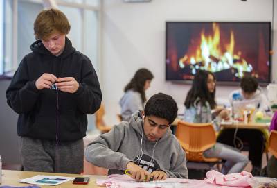 该实验室与图书馆相连,允许学生使用激光切割机、3D打印机、缝纫机和其他用于创作的工具。还有一个绿色屏幕的空间来制作视频。