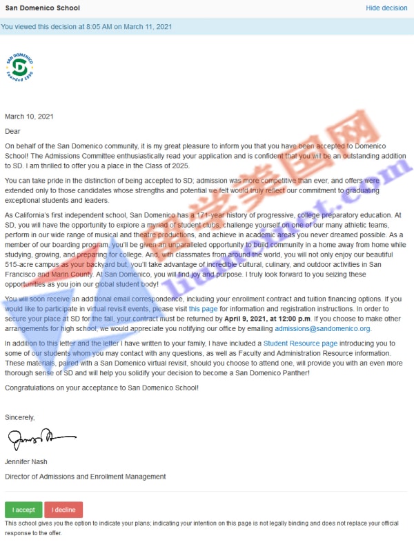 学校地址:1500 Butterfield Road,San Anselmo,CA 94960