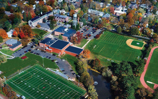 科学实验室,为油画,摄影,制陶,制图准备的艺术教室,17个座位的演讲中心,暗房,爵士乐教室,个人音乐练习室,艺术廊,学生中心,图书馆(图书,在线参考数据,杂志和国际报纸),3个计算机教室,足球场,棒球场,曲棍球场,长曲棍球场,英式足球场,垒球场,4道400米的跑道,跳高场地,跳远场地,标枪场地,铁饼场地和铅球场地,5个网球场,2个篮球场,6道25码有触摸式计时系统的游泳池,力量练习室和形体室。