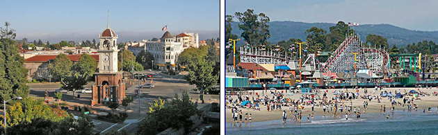 开车前往美丽的海边小城Santa Cruz晚上住当地旅馆