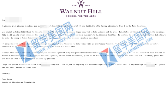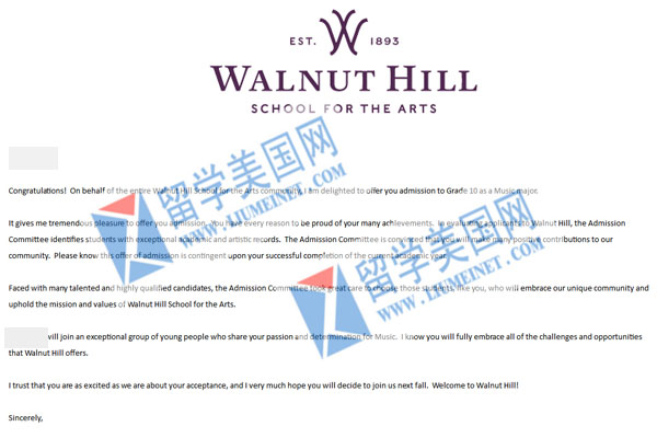 录取院校: 胡桃山艺术高中