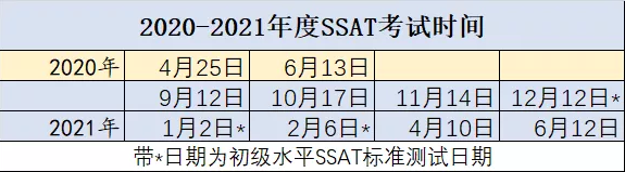 因为疫情原因,EMA提前放出了2020-2021考试年度的考试场次和考试时间,加上2019-2020考试年度应该会举办的4月份和6月份考试,接下来SSAT的10场考试的具体时间如下图所示: