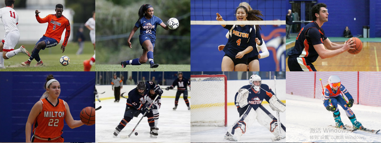 高山滑雪、棒球、篮球、越野、舞蹈、潜水、曲棍球、足球、高尔夫、冰球、皮划艇、长曲棍球、北欧滑雪、攀岩、帆船、足球、垒球、壁球、游泳、网球、田径、极限飞盘、排球、摔跤