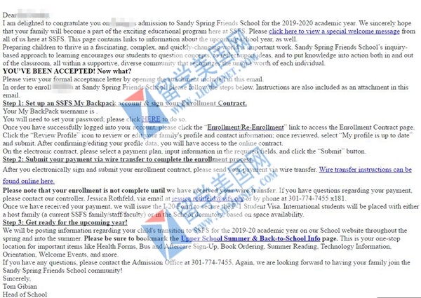 珊帝泉友高中Sandy Spring Friends School录取offer展示: