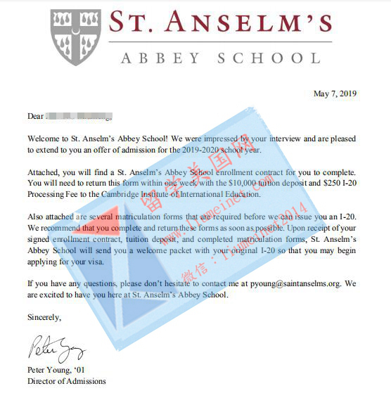 恭喜留学美国网Z同学收获圣安塞姆男校录取