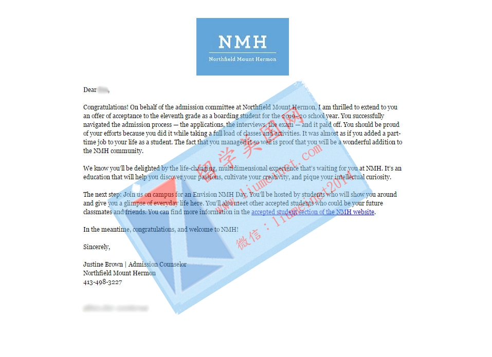 录取院校:北野山中学(Northfield Mount Hermon School)