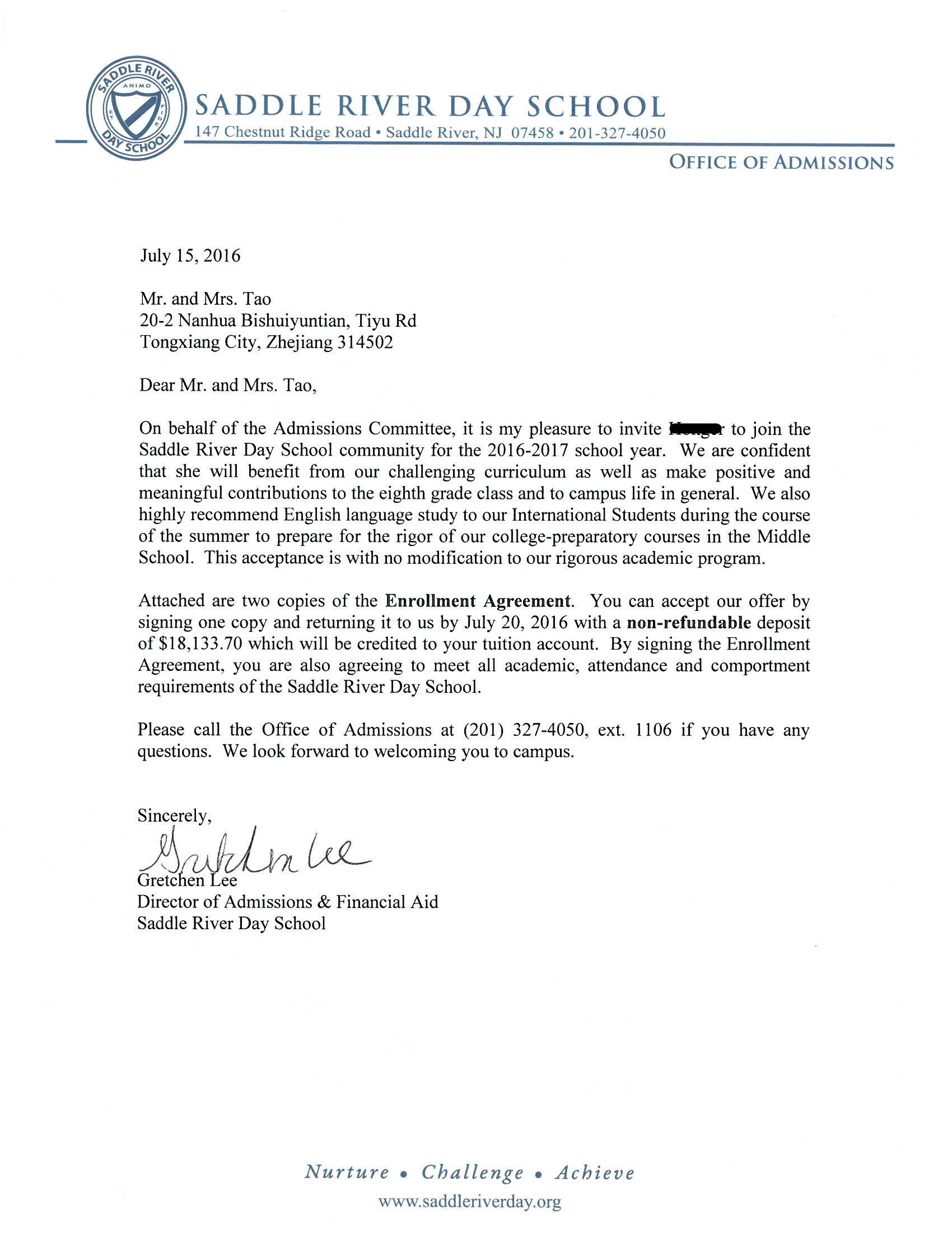 然而困难一个接着一个,因为选校很高,学校要求学生提供成绩才能获得录取。但是学生的成绩最早要8月10号才出,等到那个时候势必会影响学生的入学。于是我们在文书和面试培训方面做了大量的功夫,并积极的跟学校反馈学生的长处。在我们不懈的努力下,奇迹发生了-学校破格无语言录取学生!而且奇迹不是一个,三所学校皆是如此:桑福德,本杰明,桑德河都发来了录取!