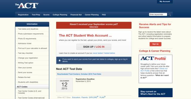 登陆ACT主页http://www.actstudent.org/,如下图,点击LOG IN,输入账号密码进入你的ACT账户。