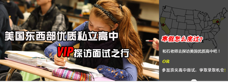 时间:北京时间2014年2月6日--21日 面试团限制人数:5人以内 面试院校:美国东西部顶尖级别私立高中 申请条件:学生及家长 大致行程:6--9号在西部加州洛杉矶,10号飞往东部,11-20号在东部宾州、麻省及康州、罗德岛,21号返程回京。